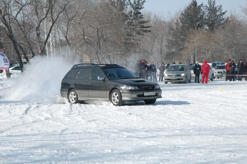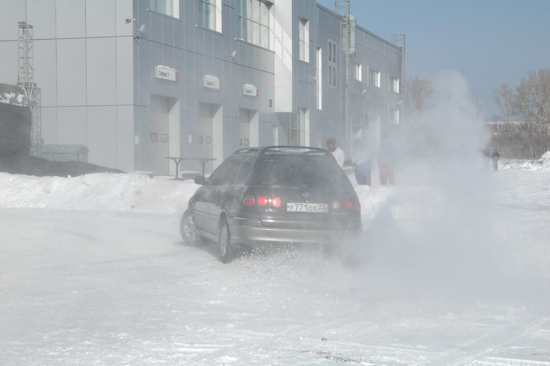 а главное, всем горячий чай, что при морозе в -20С было очень актуально 🙂 наш, Барнаульский ГТ Клуб там же проводил соревнования по скоростной езде в заносе на большой парковке перед центром, которые назывались «Ледовый Форсаж» было весело, любой желающий мог на своем авто попробовать себя в роли почти дрифтера на льду 🙂